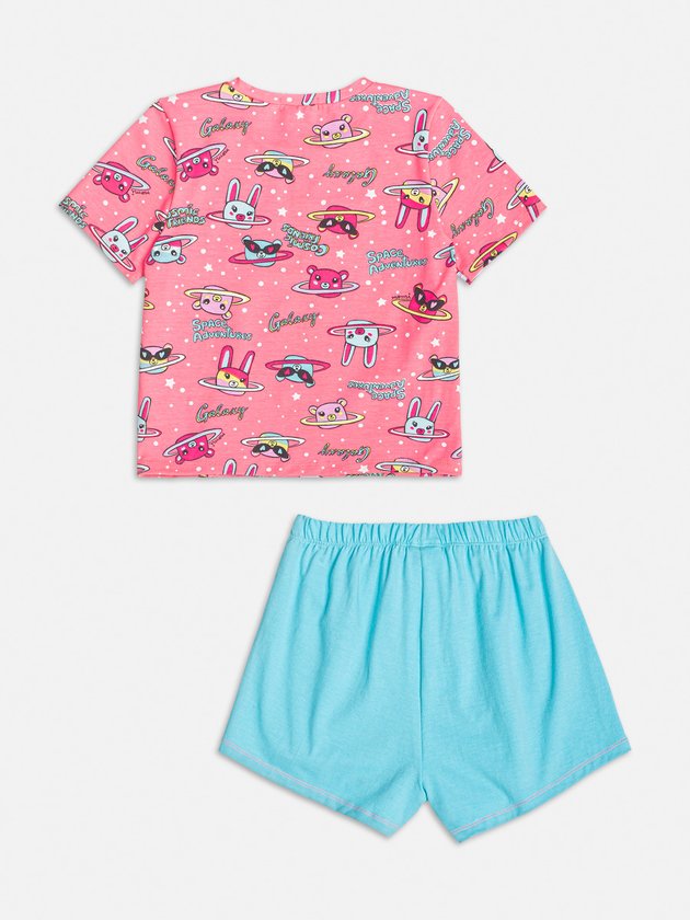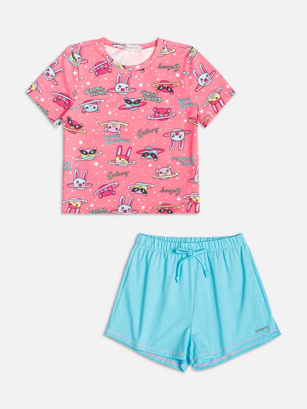 O conjunto infantil Momi possui uma estampa de galáxia fascinante, as peças são feitas de cotton, garantindo uma noite de sono confortável. Este conjunto é a combinação perfeita de estilo e conforto para as pequenas exploradoras espaciais em busca de aventuras nos sonhos. Composição: 96% algodão e 4% elastano. Ref.: Y0721