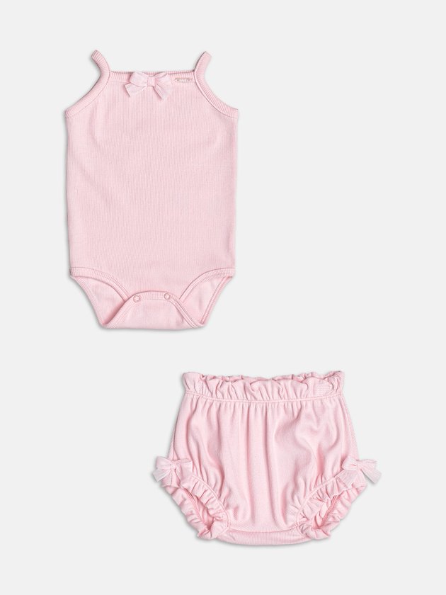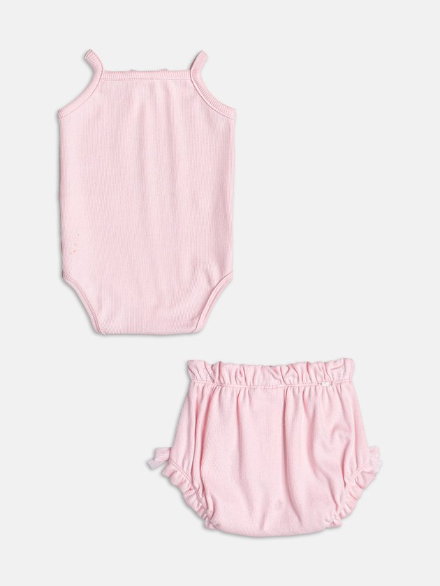 Puro encanto! A blusa traz detalhe de lacinho de tule aplicado na parte frontal, criando um visual delicado e super romântico. O short rosa, em tom suave, tem modelagem soltinha e cós de elástico, garantindo conforto total. Um conjunto que une charme, leveza e conforto para o dia a dia.