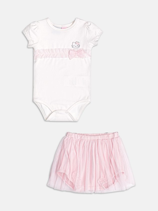 Delicado e super fofo! A blusa traz estampa da Hello Kitty com aplicação de strass, combinando perfeitamente com a saia de tule rosa, que adiciona volume, movimento e aquele toque lúdico que deixa o look ainda mais especial.