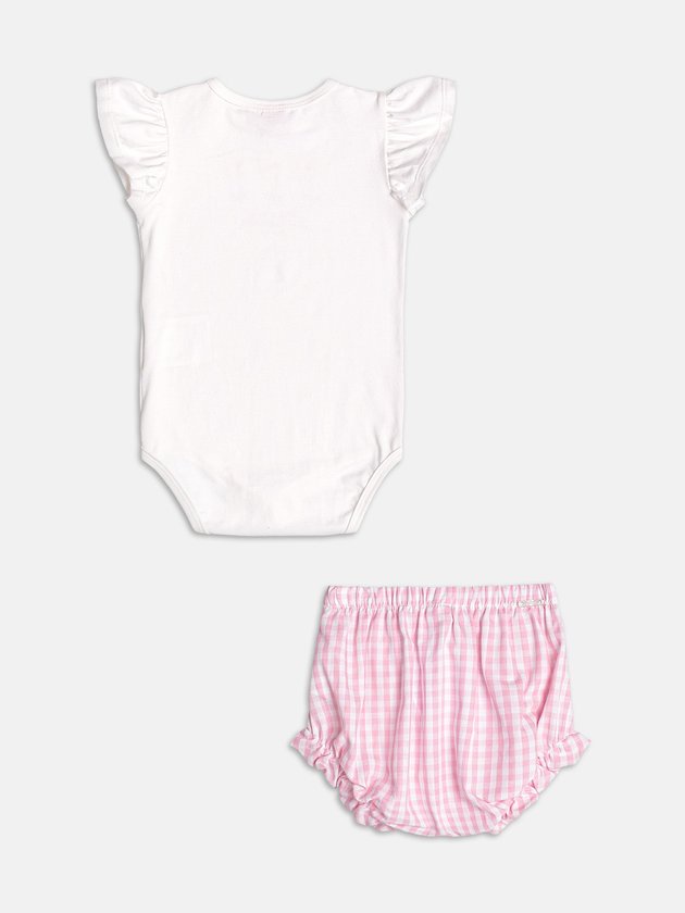 Pura fofura e romantismo! A blusa traz detalhe de gola boneca, botões decorativos e estampa xadrez vichy, enquanto o short com laço aplicado na cintura completa o look, trazendo conforto e um visual cheio de charme. Ref.: C2661