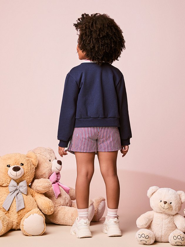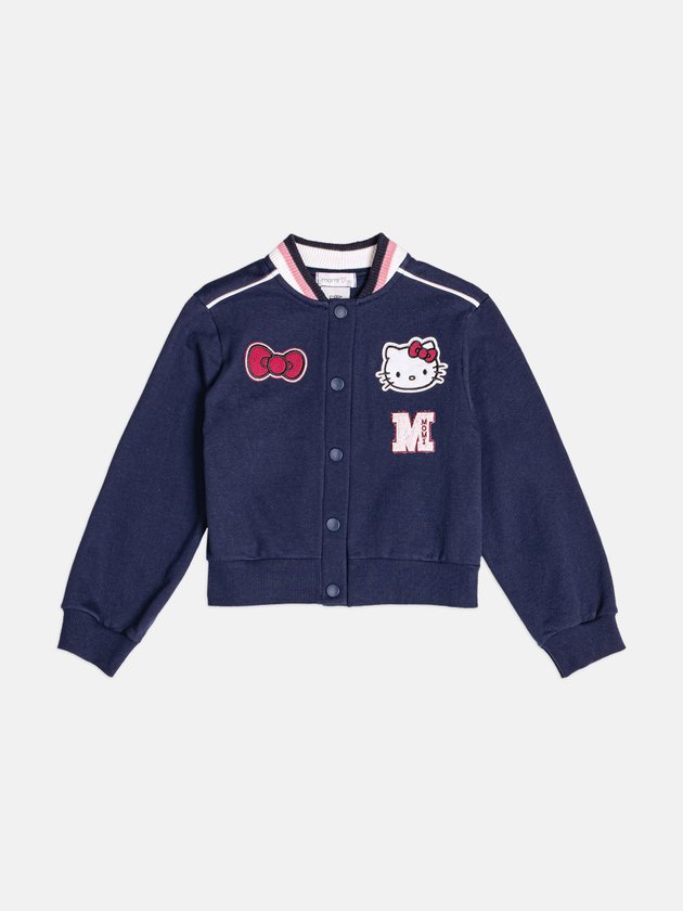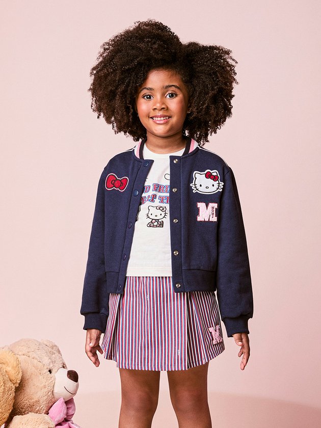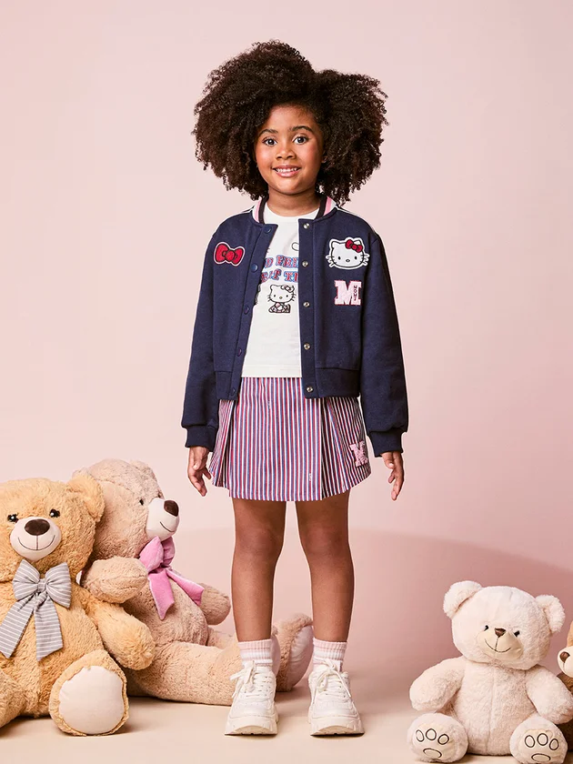 A Jaqueta Infantil com Gola Tricot da Hello Kitty é a escolha perfeita para deixar o visual das pequenas ainda mais encantador. Confeccionada em moletom macio e aconchegante, traz bordados e aplicações da Hello Kitty e seu laço clássico, com um toque divertido e cheio de estilo. A gola em tricot com listras coloridas adiciona um ar esportivo moderno, enquanto o fechamento por botões facilita o vestir. Ideal para o dia a dia, passeios e looks confortáveis, essa jaqueta combina o universo fofo da personagem com a pegada fashion que as meninas adoram. Ref.: H6890