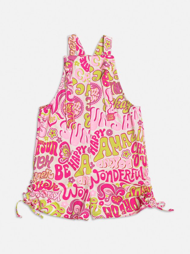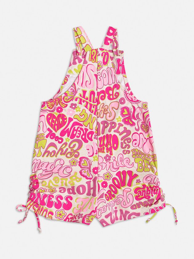 A jardineira infantil Momi é perfeita para as meninas! Feita em moletinho com estampa divertida, possui alças reguláveis com nó e lateral com amarração, garantindo ajuste perfeito. Além de ser estilosa, proporciona conforto para brincar e se divertir à vontade. Composição: 100% algodão. Ref.: H4598