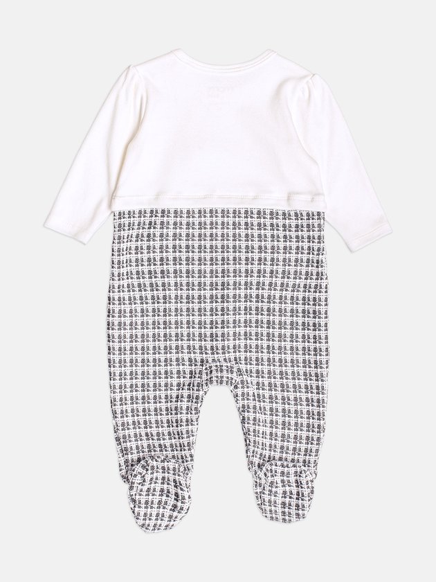 O Macacão Infantil de Tweed com Ursinho Momi é puro encanto! Com parte superior em malha macia e estampa de ursinho com laço, combina conforto e fofura. A parte inferior em tecido tipo tweed dá um toque elegante, e o fechamento por botões de pressão facilita o vestir. Ideal para manter as pequenas quentinhas e estilosas. Ref.: C2685