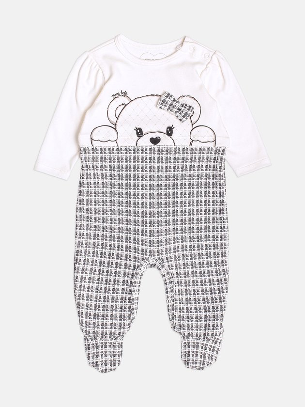 O Macacão Infantil de Tweed com Ursinho Momi é a combinação perfeita de conforto e elegância. Confeccionado em tecido macio com parte inferior em tweed, o modelo traz o toque sofisticado da coleção Bear Story Winter 26. A estampa do ursinho bordado com laço delicado reforça o charme lúdico característico da marca. Possui pezinho fechado, fechamento com botões de pressão para praticidade e modelagem confortável que permite liberdade de movimento. Quentinho e cheio de estilo, é ideal para os dias frios, garantindo que as pequenas fiquem protegidas e encantadoras em qualquer ocasião.