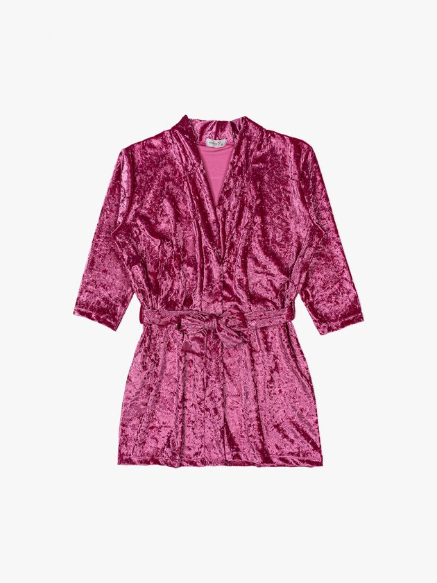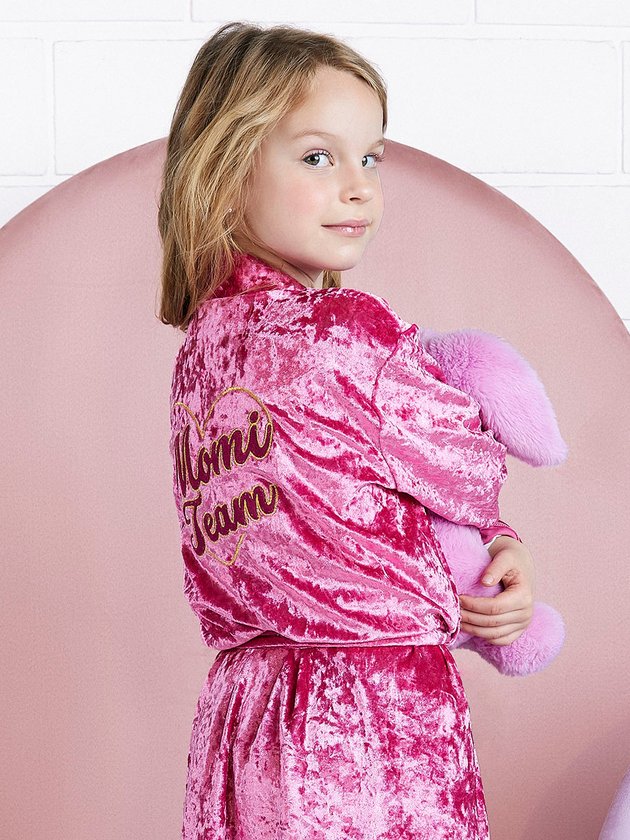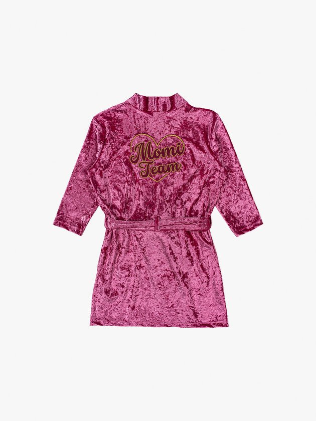 O Roupão Momi Team foi confeccionado no conforto do veludo pink, em seus detalhes ele traz bordado na parte de traz e passantes na cintura com cinto no mesmo tecido. As Momi Girls vão amar usar esse roupão super confortável e fofinho nos dias frios. Composição: 97% poliéster e 3% elastano. Ref.: H3576