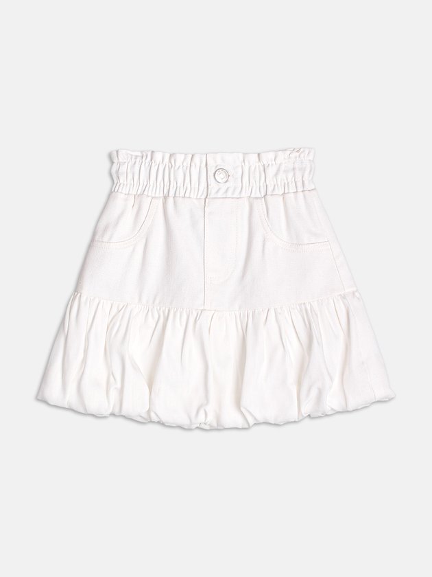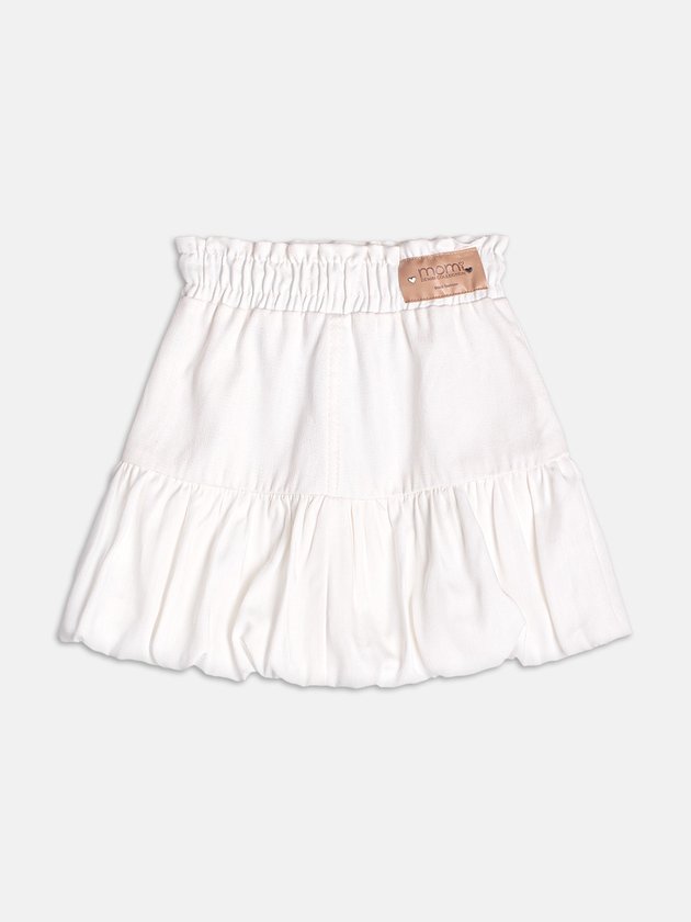 Essa saia une estilo e estrutura com seu formato balonê moderno e acabamento em sarja off white. A modelagem adiciona volume de forma sutil, deixando o visual mais marcante e delicado ao mesmo tempo. O tom neutro é perfeito para combinações com peças estampadas e coloridas da coleção. Ideal para passeios e eventos especiais, sem abrir mão do conforto. Um clássico repaginado com o frescor do verão e o toque fashion da Momi.