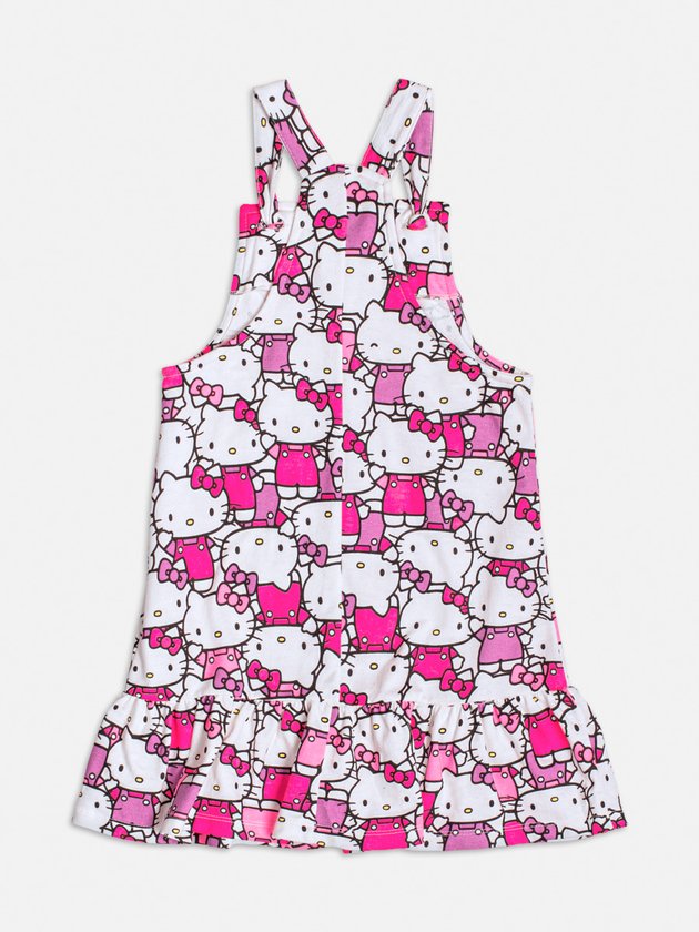 Este salopete encantador da Hello Kitty é ideal para dias de calor, combinando a leveza da peça com o estilo divertido da personagem. Com alças ajustáveis e uma saia com babado, a peça é perfeita para compor um look super fofo e confortável. A estampa cheia de Hello Kitty em tons de rosa traz uma vibração jovem e animada, enquanto o design com babados adiciona um toque delicado e cheio de charme.
