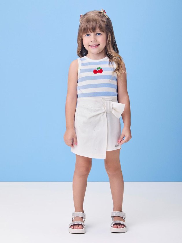 Esse short saia em sarja clara é repleto de detalhes encantadores: laço aplicado na cintura e pedrarias delicadas. A peça une praticidade com estética romântica, garantindo liberdade de movimentos com muito estilo. O tecido estruturado dá elegância ao look, ideal para compor produções para ocasiões especiais. Uma peça versátil e apaixonante, cheia de charme e acabamento impecável.