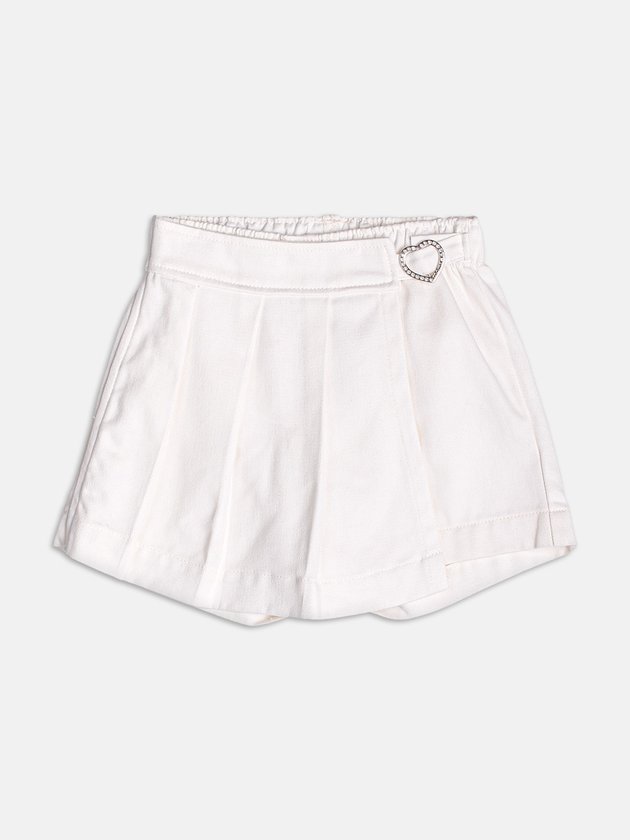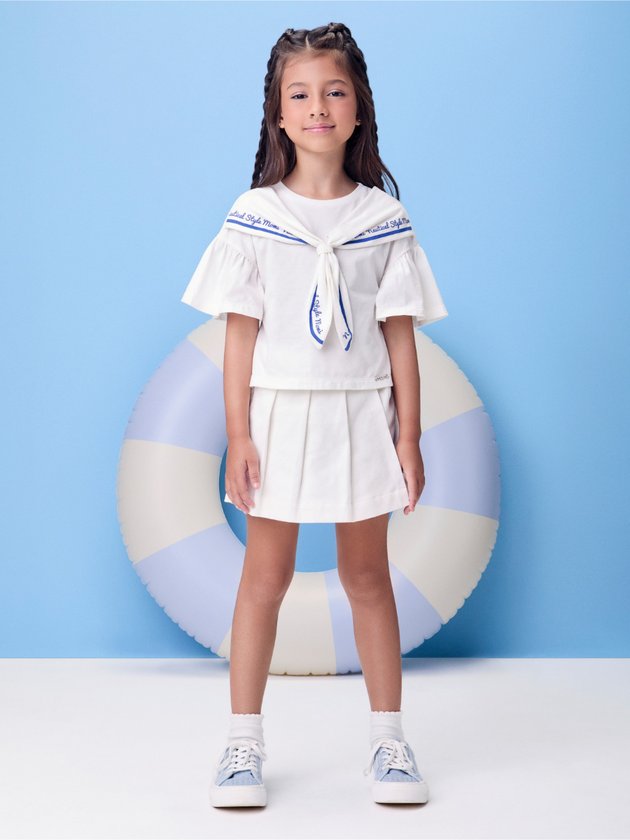 Essa peça combina funcionalidade e estilo com perfeição. A aparência de saia com preguinhas adiciona volume e charme ao visual, enquanto o short interno garante conforto total para brincar à vontade. A sarja estruturada em tom claro traz versatilidade e combina com várias blusas e regatas da coleção. Ideal para produções leves e estilosas nos dias mais ativos. Uma peça must-have para o guarda-roupa de verão.