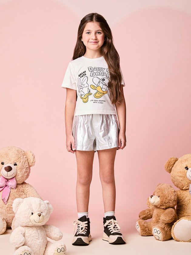 O Shorts Menina Momi Infantil Metalizado aposta no acabamento brilhante em tom prata para criar produções modernas e cheias de estilo na moda infantil feminina. Confeccionado em material com efeito metalizado, apresenta modelagem confortável e estruturada, além de cós com elástico que proporciona ajuste perfeito ao corpo e liberdade nos movimentos. O detalhe de bolso fake frontal valoriza o design e reforça a proposta fashion da peça. Versátil, combina com t-shirts, blusas em tule ou jaquetas, criando looks impactantes para passeios, festas e ocasiões especiais.