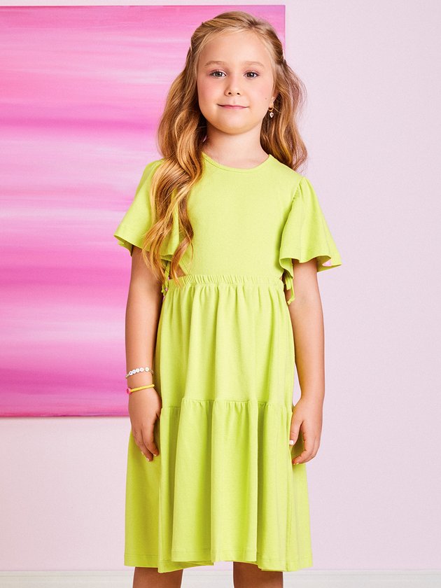 O vestido Lima infantil Momi é confeccionado em malha canelada, proporcionando conforto para as meninas. Sua saia é feita em meia malha com babados, trazendo leveza para a peça. A cintura possui elástico para um ajuste perfeito. Um vestido encantador para as meninas arrasarem em qualquer ocasião. Composição: 98% algodão e 2% elastano. Ref.: H4803