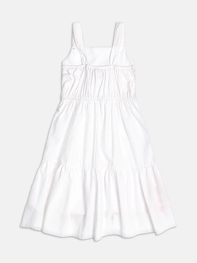 Uma peça que é sinônimo de romantismo! O vestido traz tecido leve e confortável, com alças largas e saia em camadas, que garantem movimento e fluidez. O grande destaque são os bordados florais aplicados na parte inferior da saia, que adicionam um toque artesanal e encantador. Ideal para ocasiões especiais ou para deixar o dia a dia muito mais fofo.