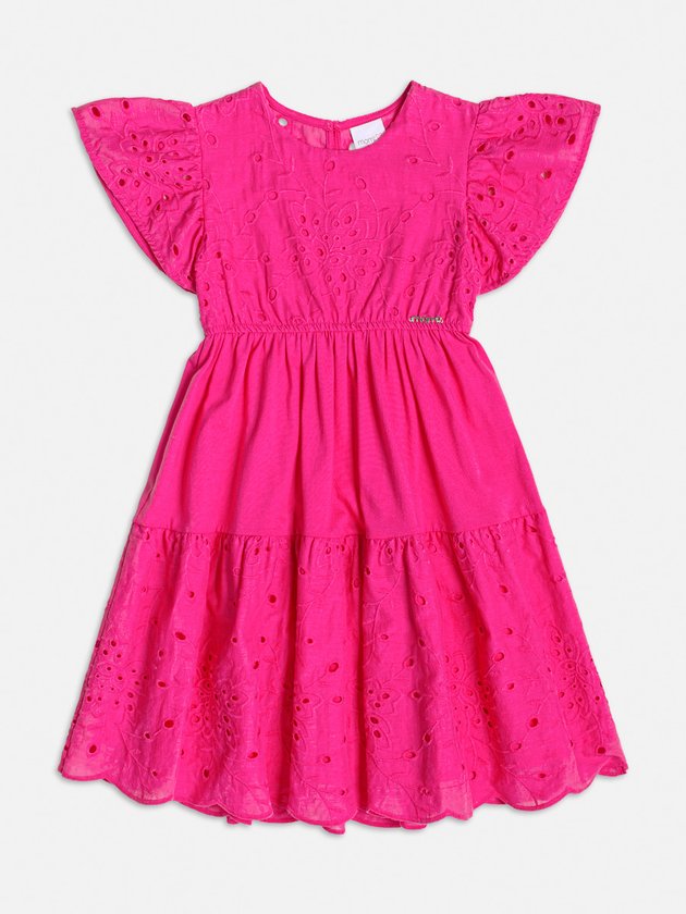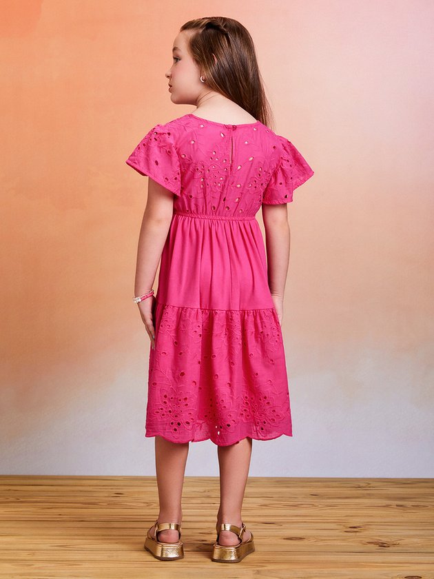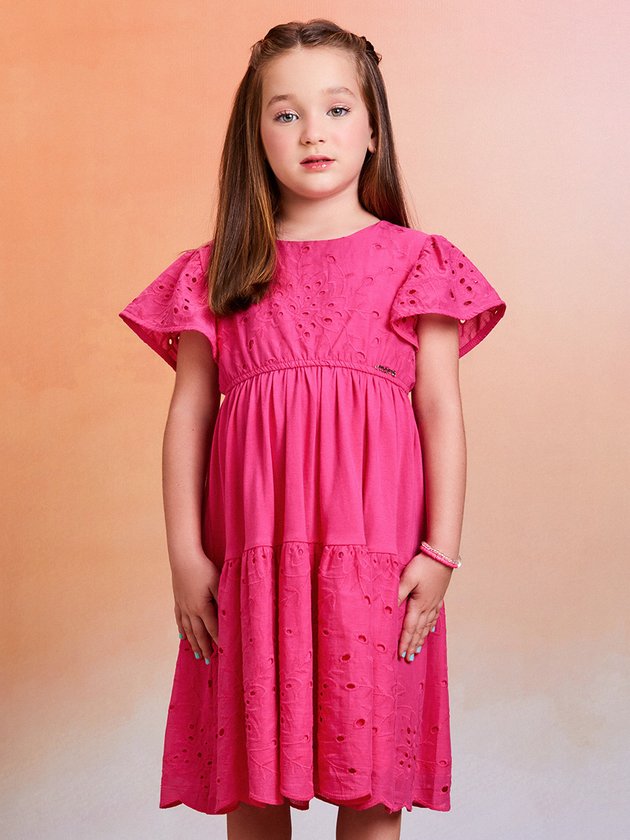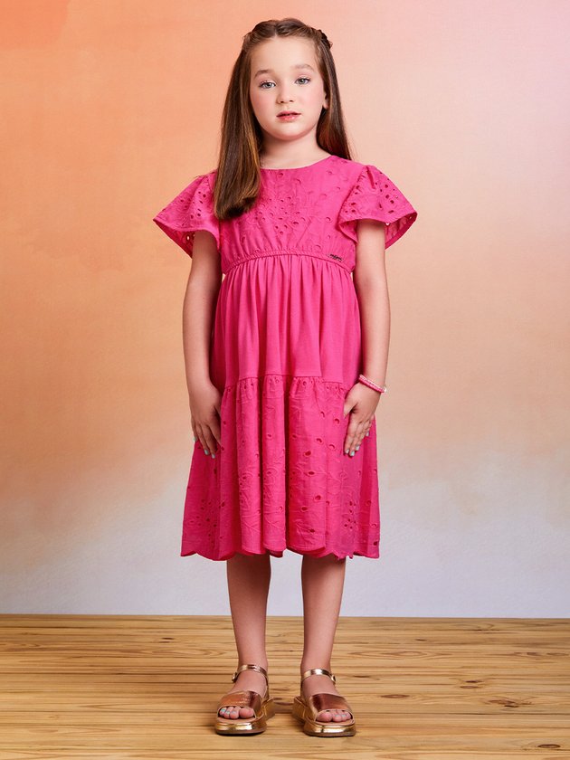 Elegância infantil define nosso vestido magenta. Feito de laise e meia malha, possui mangas com babados, oferecendo um visual charmoso. Ideal para ocasiões especiais, pode ser combinado com sandálias ou sapatilhas, tornando cada momento memorável no dia das pequenas. Composição: 100% algodão. Ref.: H4790