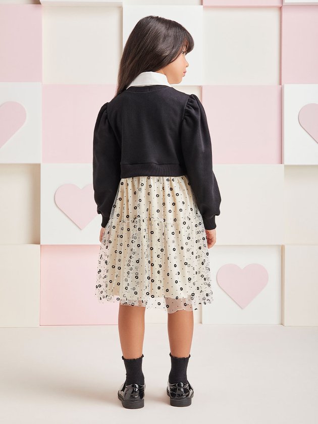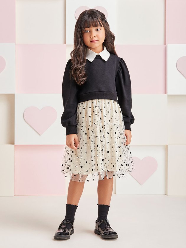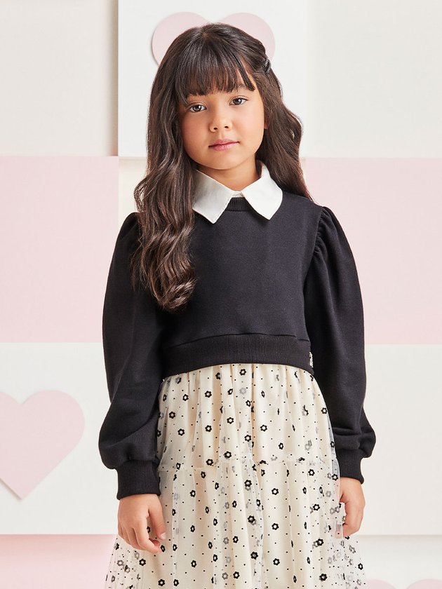 Encante sua pequena com o vestido infantil Momi, uma peça única que combina conforto e estilo. O busto em moletinho oferece maciez, enquanto a saia em tule com delicadas flores adiciona charme. As Momi Girls vão se apaixonar! Composição - Parte Superior: 100% algodão. Saia: 100% poliamida. Ref.: H4969