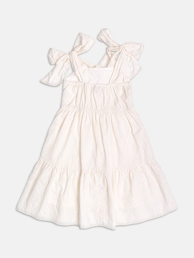 Esse vestido é pura delicadeza! Feito em laise com textura suave e toque romântico, ele apresenta bordados de flores que reforçam o mood campestre da estação. A modelagem fluida com babados na barra adiciona leveza e movimento ao look. O tom off white valoriza os detalhes e combina com acessórios vibrantes da coleção. Um vestido perfeito para viver momentos especiais com doçura e estilo. A escolha ideal para quem ama um visual leve e sofisticado.