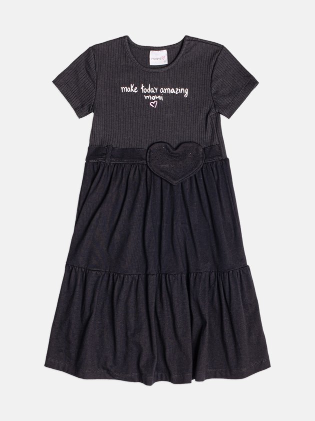 Vestido Infantil Manga Curta com Bolsinha de Coração