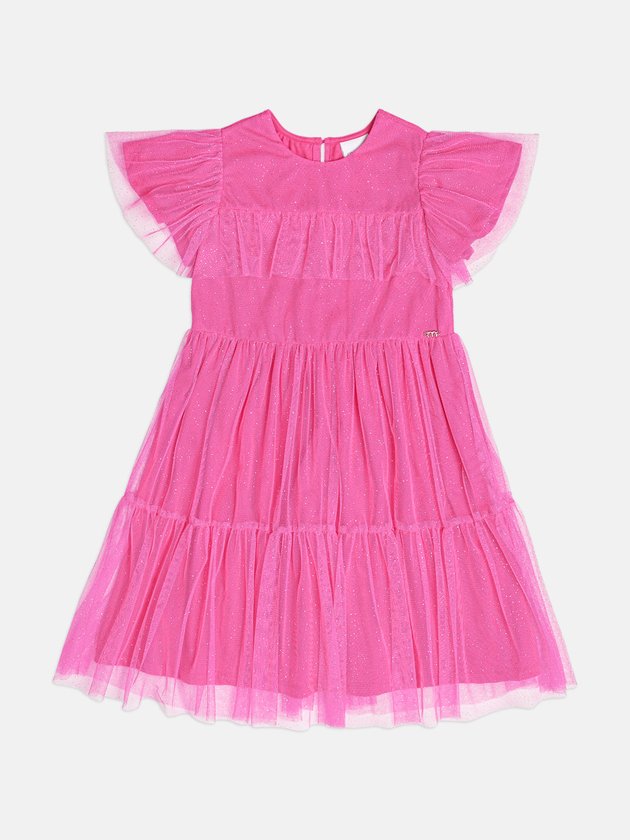O Vestido Infantil de Tule com Glitter é a escolha perfeita para quem ama um look cheio de brilho e delicadeza. Confeccionado em tecido leve e forro confortável, ele possui camadas de tule com brilho sutil que criam um efeito encantador. As mangas curtas com babados e a saia ampla proporcionam movimento e leveza. O fechamento nas costas garante praticidade, enquanto o design sofisticado faz desse vestido uma opção ideal para festas, comemorações e ocasiões especiais. Um modelo que une conforto, estilo e o charme dos detalhes cintilantes! Ref.: H6883