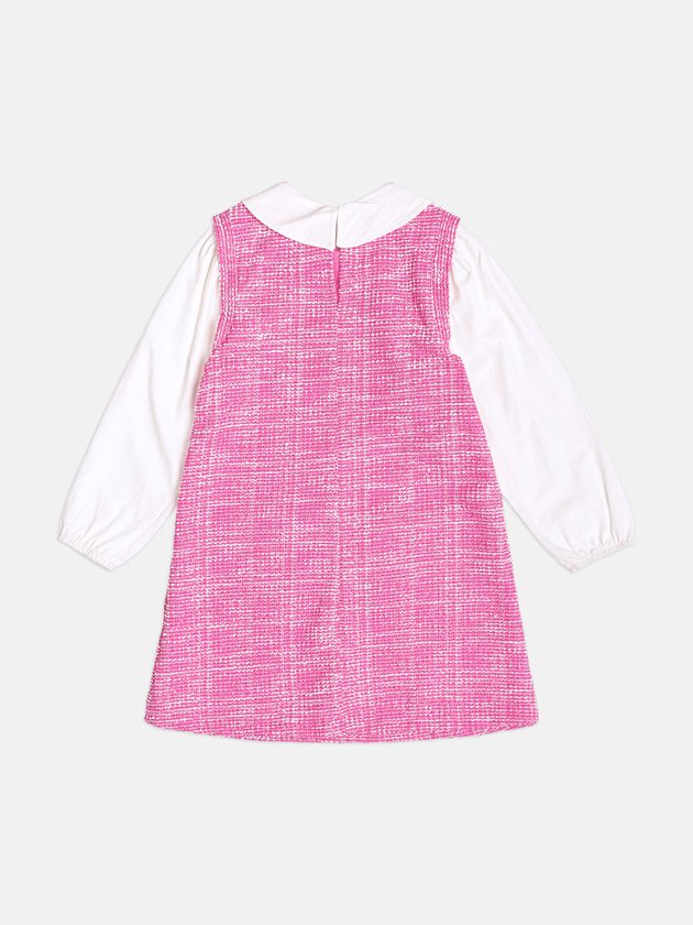 O vestido infantil de tweed com golinha é aquele look pronto que já entrega personalidade de longe. O tweed rosa vibrante rouba a cena com sua textura elegante, trazendo uma vibe moderna e cheia de atitude. A golinha branca adiciona um toque clássico super fofo, criando um contraste lindo que deixa a peça ainda mais especial. Os patches aplicados reforçam o estilo cool da marca, dando um ar divertido sem perder a delicadeza. Com mangas longas leves e modelagem confortável, o vestido é ideal para ocasiões especiais, fotos, passeios e qualquer momento que peça um visual marcante e estiloso. Ref.: H6960