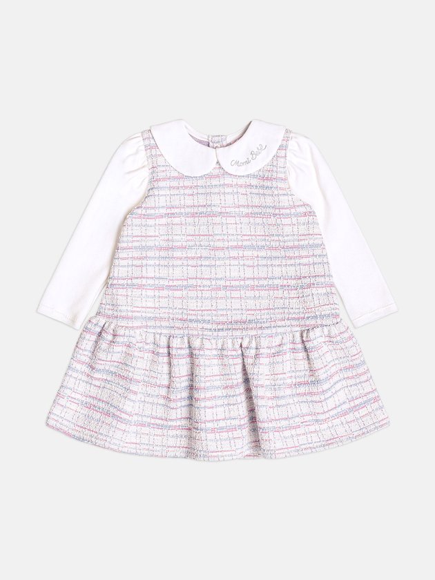 O Vestido Infantil de Tweed com Manga Longa Momi é pura elegância com um toque de fofura! Feito em tecido encorpado, possui estampa em tons suaves de rosa e cinza, golinha charmosa e mangas em malha macia. Ideal para os dias frios, garante conforto e estilo em qualquer ocasião especial. Ref.: C2684
