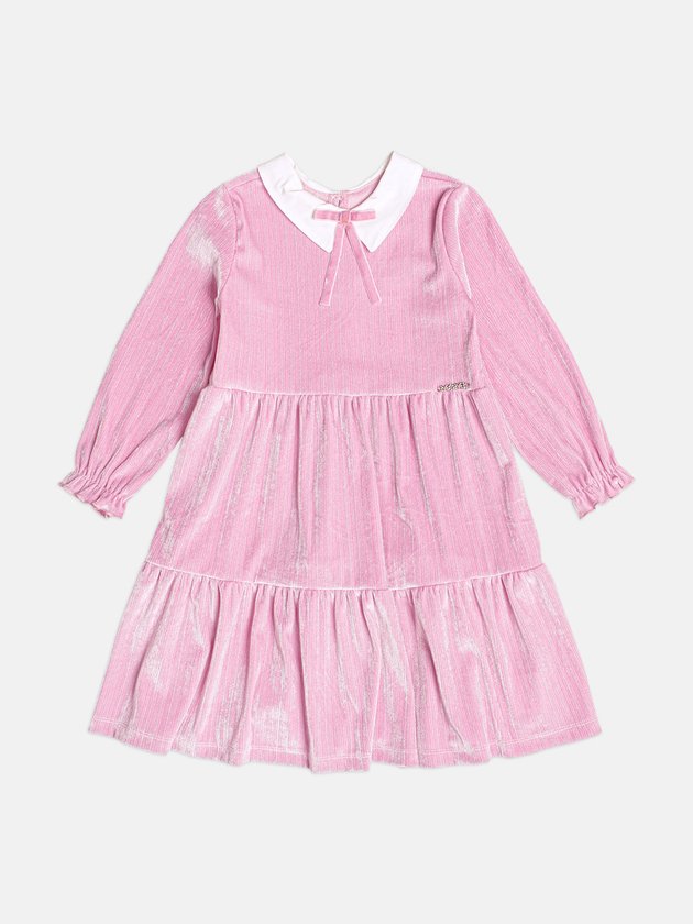 O Vestido Infantil em Plush com Brilho entrega aquele visual fofíssimo com um toque elegante. O tecido plush rosado tem brilho suave e caimento macio, deixando a peça confortável e estilosa. A golinha branca com laço adiciona charme clássico, enquanto as mangas longas e a saia em camadas garantem movimento e delicadeza para qualquer ocasião. Ref.: J7066