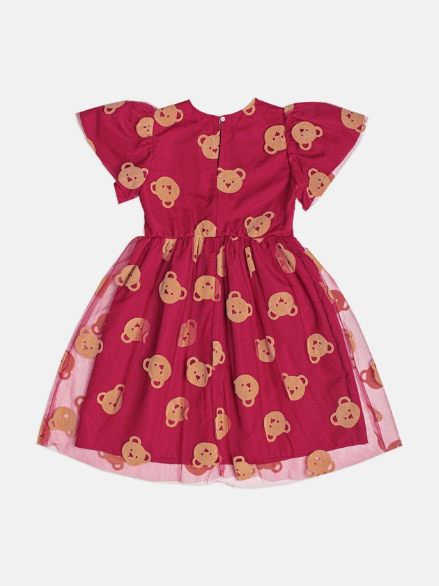 Vestido Infantil Menina em Tule de Ursinhos