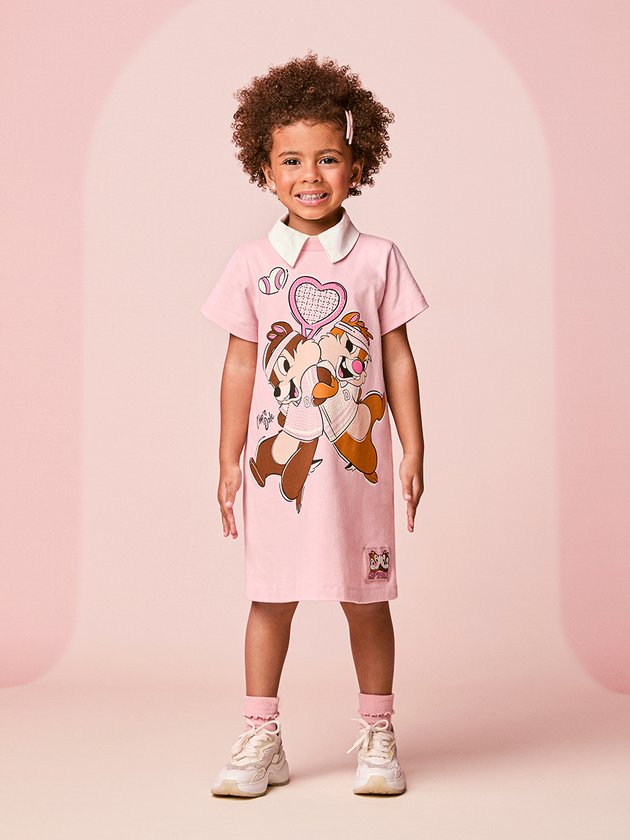 O Vestido Infantil Rosa do Tico e Teco traz a dupla mais divertida da Disney em uma estampa superanimada. O modelo tem manga curta, caimento confortável e toque macio, perfeito para o dia a dia. Leve e cheio de personalidade, ele deixa qualquer look mais fofo e descontraído, acompanhando as pequenas em todas as brincadeiras.