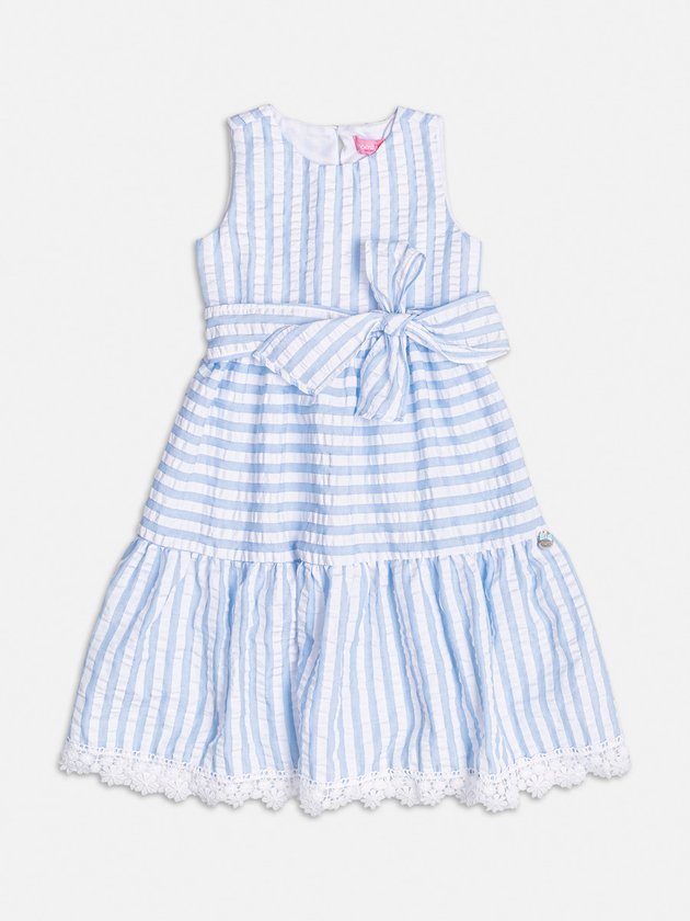 Vestido Listrado com Laço