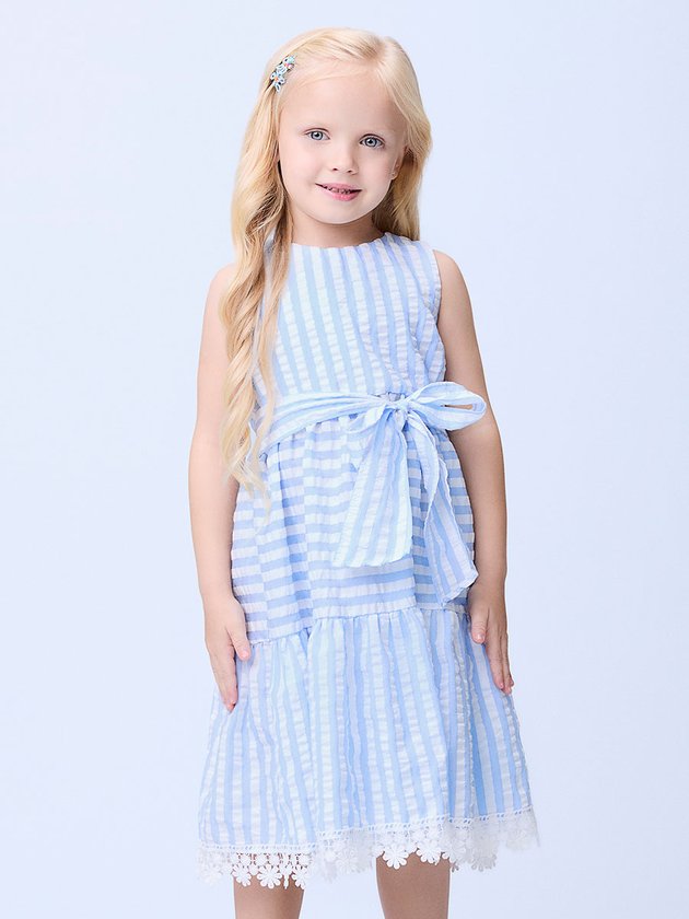 Este elegante e cheio de charme, o vestido listrado com laço é ideal para um look casual chic. As listras e o laço adicionam um toque de sofisticação, enquanto o tecido leve garante conforto. Perfeito para um dia de brincadeiras ou para um evento especial, sempre com muito estilo. Ref.: J6037