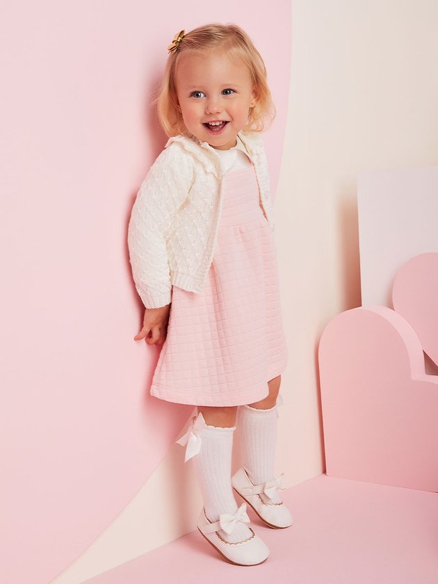 O vestido rosa Momi Bebê, foi confeccionado em metalassê, destaca-se pelas mangas em cotton, proporcionando conforto. A gola com patch adiciona um toque charmoso e a abertura no ombro, com botões de pressão, facilita o vestir. As meninas vão ficar ainda mais fofa nesse vestido. Composição: 99% poliéster e 1% elastano. Ref.: C2032