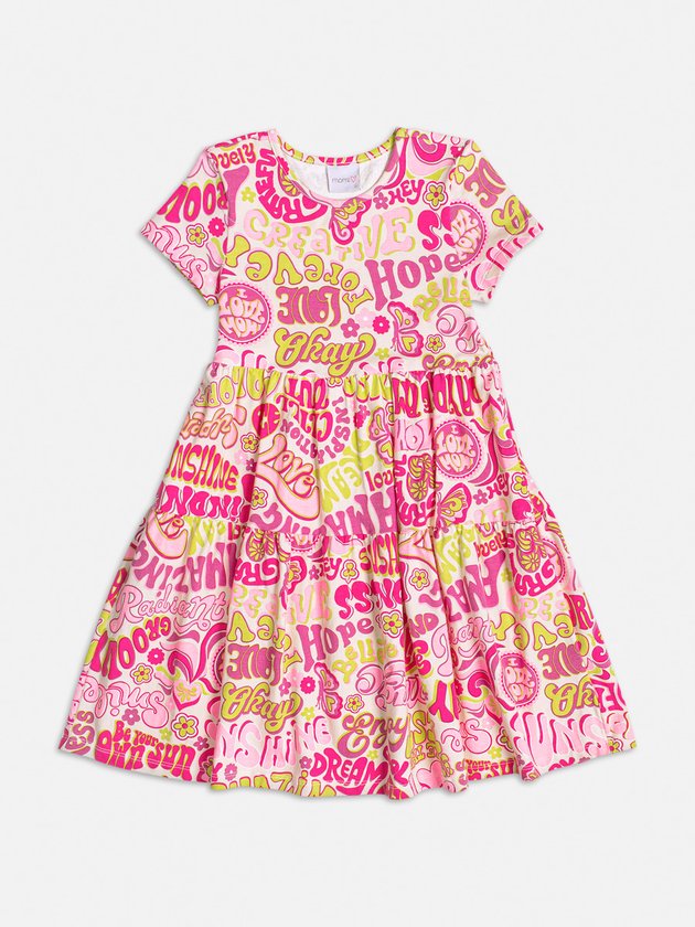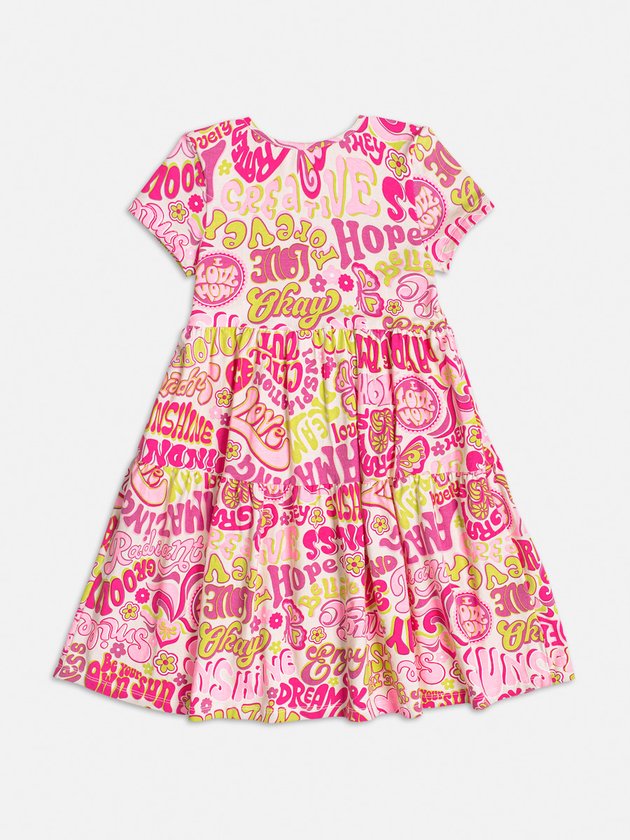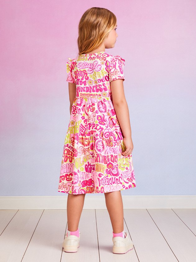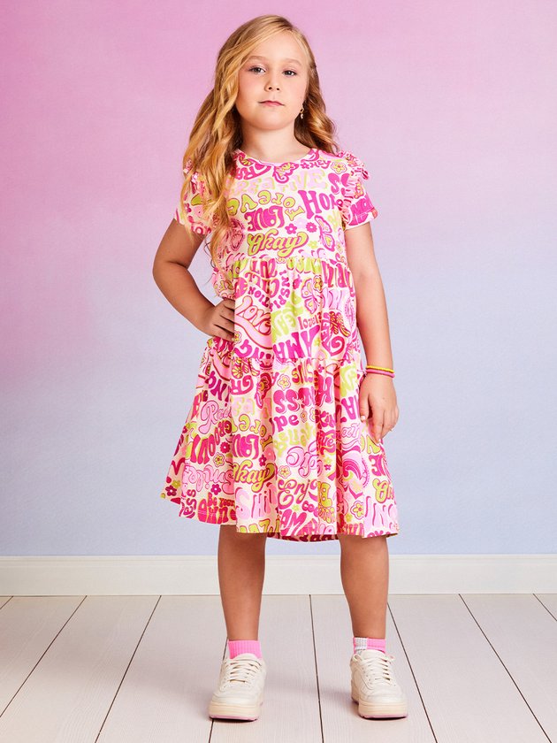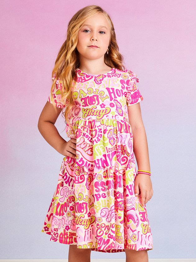 Encante sua pequena com o vestido infantil Momi! Feito em cotton com estampa divertida que traz alegria ao look. A saia com babado dá um toque charmoso, enquanto a etiqueta decorativa da marca adiciona um detalhe especial. Composição: 96% algodão e 4% elastano. Ref.: H4647