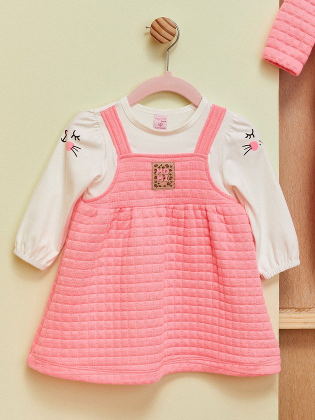Desenvolvido em metalassê rosa com partes em cotton que deixa a peça ainda mais especial, o vestido Momi traz nos detalhes elástico no punho e etiqueta decorativa da marca. As Momi Babys vão ficar ainda mais fofas com esse vestido cheio de conforto e estilo. Composição: 72% poliéster, 27% viscose e 1% elastano. Detalhes: 96% algodão e 4% elastano. Ref.: C1713