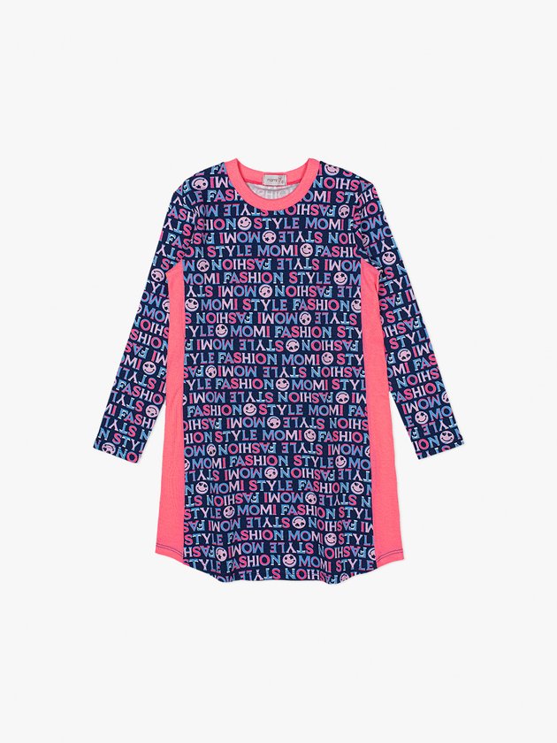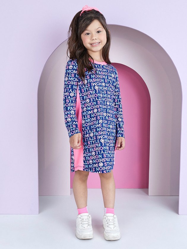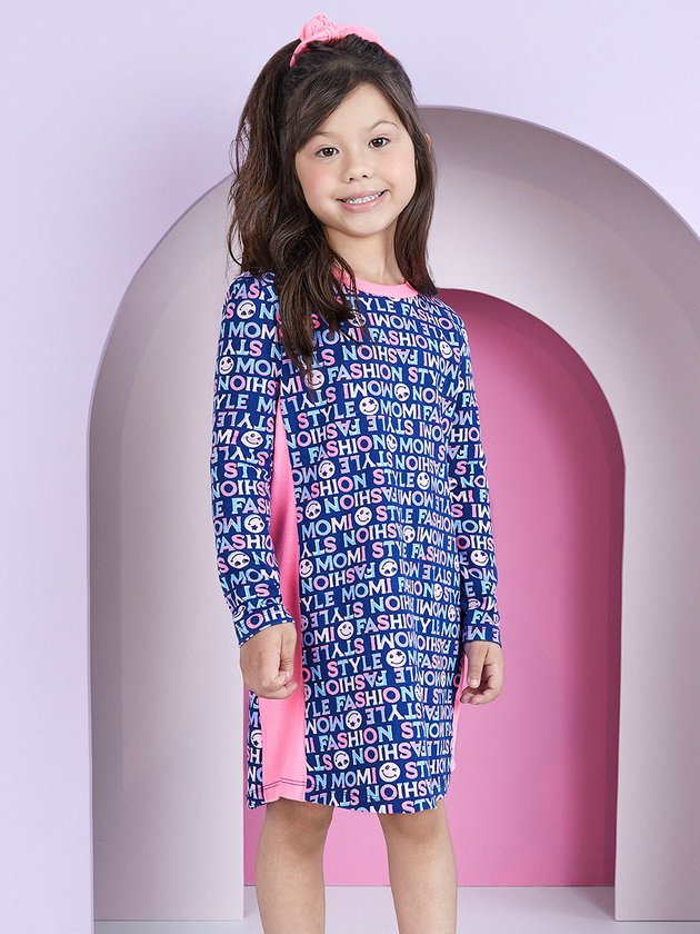 O Vestido de Manga Longa Momi foi confeccionado no conforto do cotton com detalhes em malha canelada rosa, sua modelagem básica proporciona maior conforto ao vestir sendo ideal para o dia a dia das meninas, em sua estampa rotativa traz lettering e carinhas smile. Composição: 96% algodão e 4% elastano. Ref.: H3558