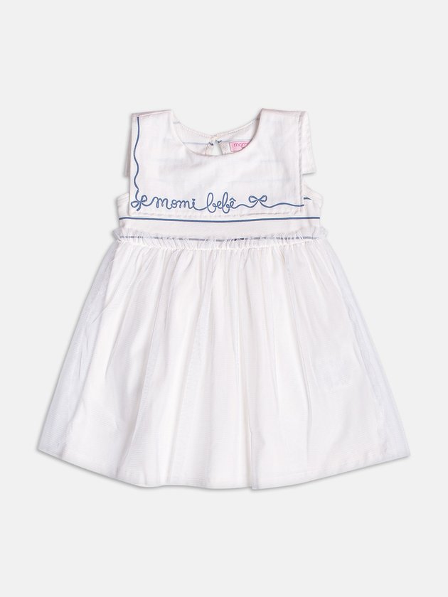Com visual clássico e romântico, esse vestido off white ganha charme com a golinha estilo marinheiro e estampa de lacinho. A saia em tule levemente rodada garante leveza, enquanto os acabamentos finos elevam o visual. Ideal para eventos especiais ou para trazer um toque retrô ao dia a dia. Um look que une delicadeza e sofisticação com toque náutico. Ref.: C2580