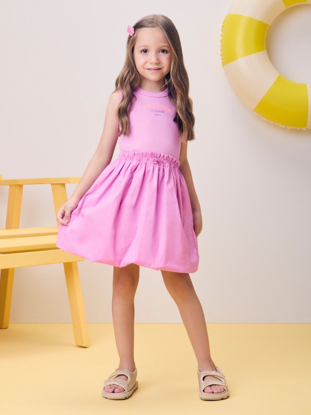 Moderno e super estiloso! O vestido traz parte superior lisa, com gola redonda e mangas delicadas, enquanto a saia balonê em tecido leve adiciona volume e um efeito incrível ao look. Um modelo que une conforto, movimento e muito estilo para os dias mais especiais.