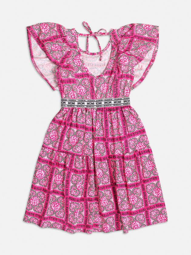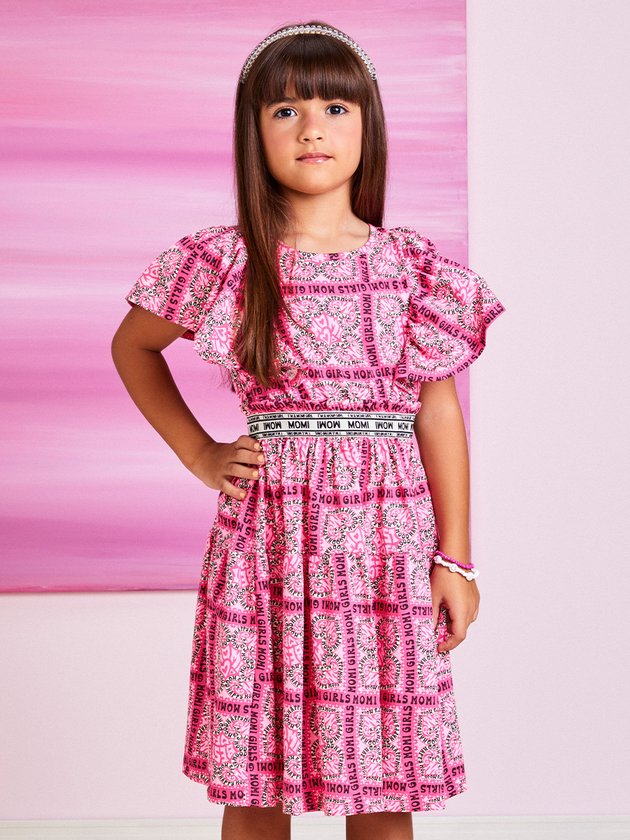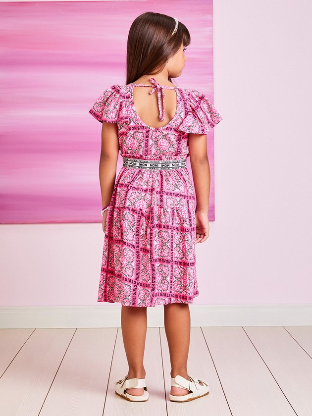 O vestido infantil Momi é confeccionado em meia malha, garantindo conforto para as meninas. Possui estampa charmosa, que adiciona estilo à peça, com cordão para amarrar nas costas e elástico na cintura personalizado, oferece um ajuste perfeito. Composição: 100% algodão. Ref.: H4589