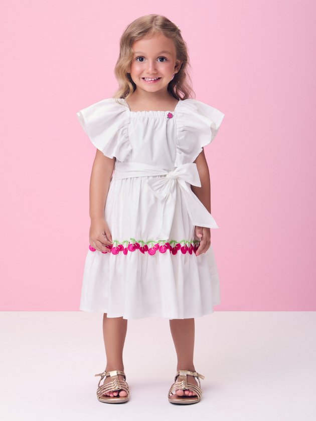 Esse vestido em tricoline off white traduz charme e elegância com seu bordado de cerejas coloridas e modelagem impecável. A peça tem gola delicada, mangas curtas e saia rodada que cria movimento e leveza. O tecido estruturado valoriza o corte e permite combinações com acessórios vibrantes. Uma opção encantadora para ocasiões especiais com aquele toque retrô e feminino que a Momi sabe fazer como ninguém. Ref.: J6713